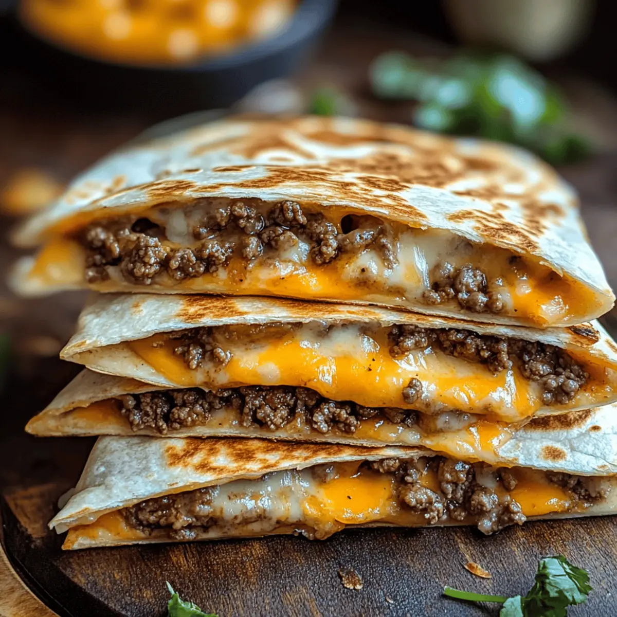 These Smashburger Quesadillas are perfect for those busy weeknights when you need to save time in the kitchen! You can prepare the filling (cooked ground beef mixed with seasoning and cheese) up to 24 hours in advance. Simply cool the mixture and store it in an airtight container in the refrigerator to maintain its flavor and quality. When you’re ready to enjoy, just fill the tortillas and grill them as directed; they’ll taste just as delicious! For added convenience, you can freeze the assembled quesadillas for up to one month—just be sure to wrap them tightly to prevent freezer burn. Prior to serving, reheat in a skillet or air fryer for that perfect crispy finish.